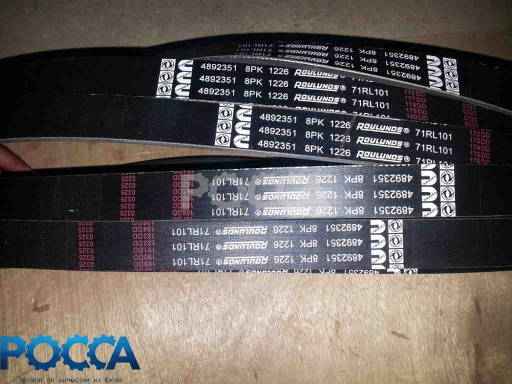 Приводной ремень 8PK1226 обеспечивает привод навесного оборудования от коленчатого вала двигателя. Предназначен для двигателей CUMMINS ISBe285, применяемых в том числе на КАМАЗ. Артикул 4892351, бренд CUMMINS. Представлено в каталоге ГК Росса (Новосибирск), доставка по всей России.