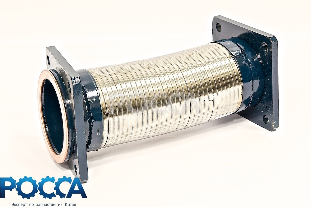 Гофрированная гибкая вставка с фланцами для выхлопной системы грузовых автомобилей HOWO (Хово), артикул WG9112540001. Компенсирует тепловые расширения и вибрации в системе выпуска отработавших газов, предотвращая усталостные трещины в жёстких трубах. Устанавливается между секциями выхлопного тракта двигателей WD615. Представлено в каталоге ГК Росса (Новосибирск), доставка по всей России.