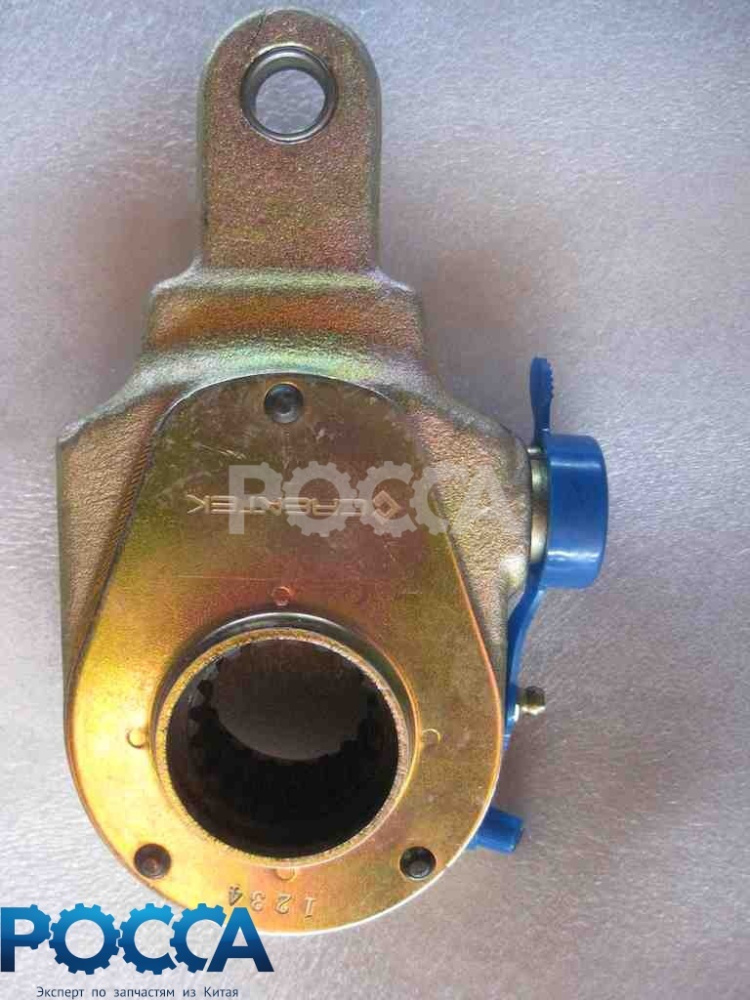 Регулировочный рычаг (трещотка) тормозного механизма передней оси для грузовиков HOWO (Хово) и SHAANXI (Шанкси), артикул AZ9100440005. Трещотка автоматически компенсирует износ тормозных накладок, поддерживая постоянный зазор между колодками и барабаном и обеспечивая стабильную эффективность торможения. Устанавливается на тормозной вал переднего моста. Представлено в каталоге ГК Росса (Новосибирск), доставка по всей России.