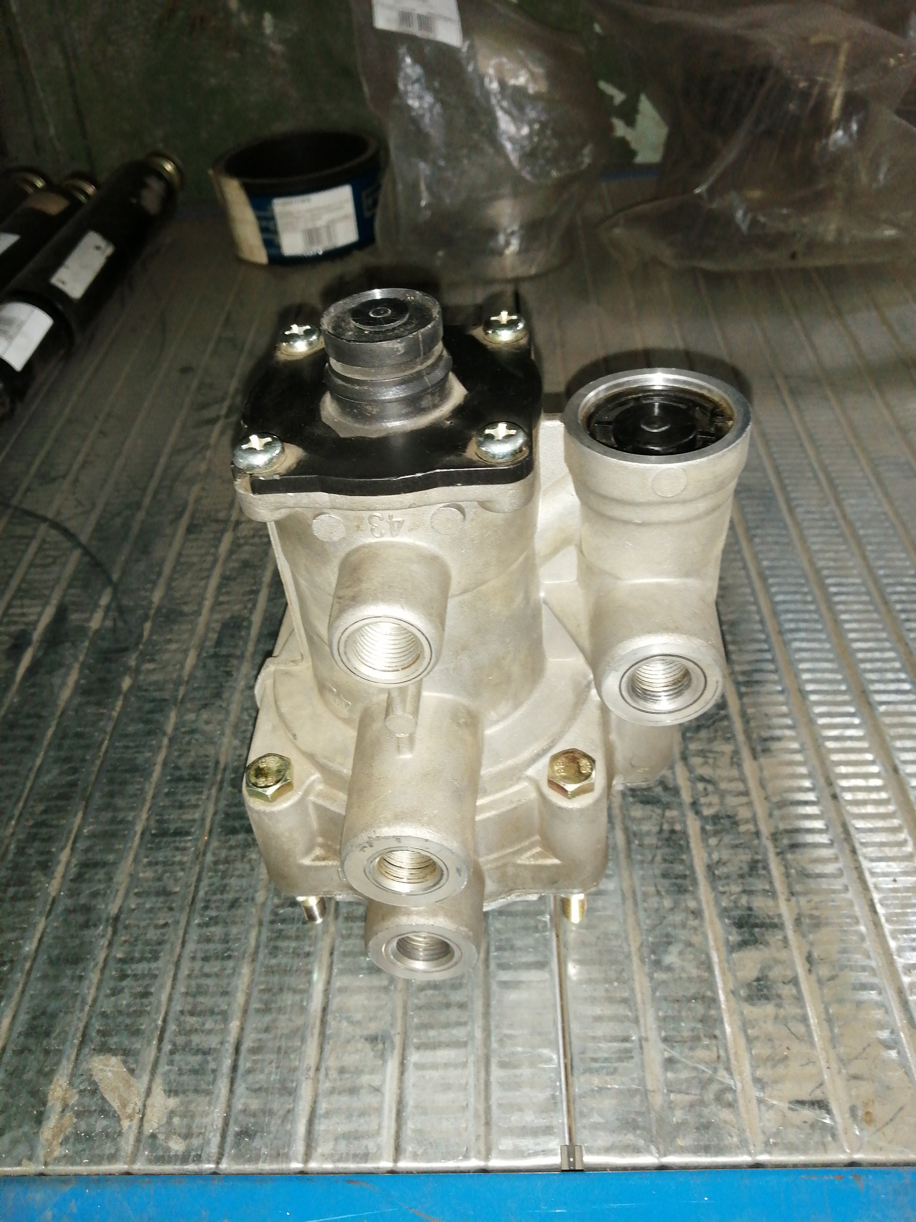Воздухораспределитель применяется в пневматической системе грузовых автомобилей HOWO. Управляет распределением сжатого воздуха между контурами тормозной системы и другими пневматическими потребителями. Артикул WG9000360180/3. Представлено в каталоге ГК Росса.
