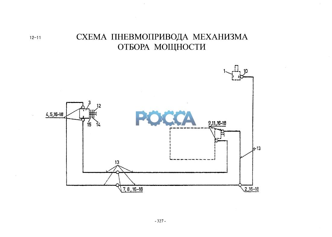Схема пневмопривода механизма отбора мощности HOWO (Хово) HOWO 17 Гр. Коробка передач