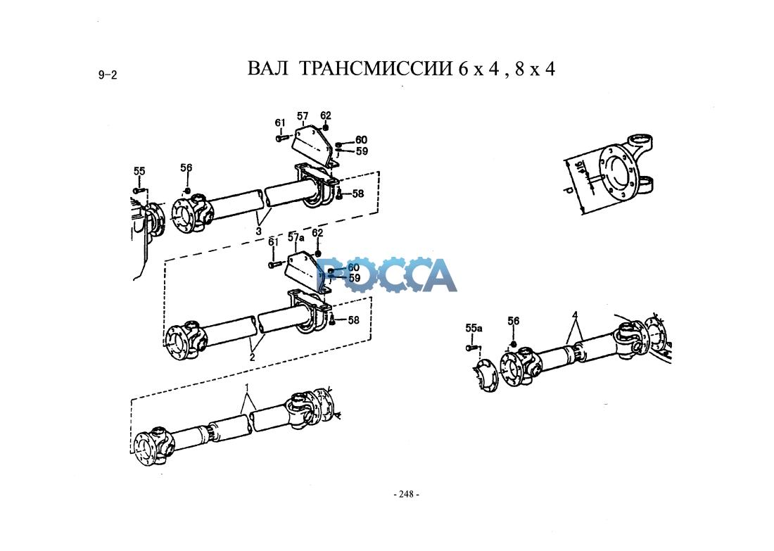 25 AZ9636312001ZAZ9100310021 (Ф57) Промежуточный вал привода 3/ кроштейн 7 Коробка S6-120 | мост-HW1697 | фланец-PF165 ZZ1317M4661W(V)/