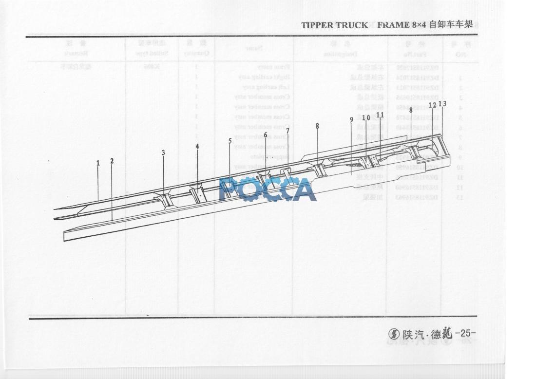 | 7 | DZ9100S13001 | 1 | Cross member assy | 横梁总成 | ||||