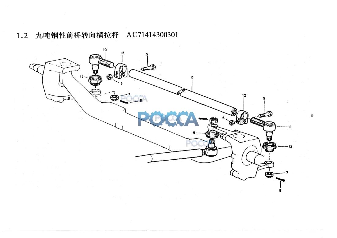 | 2 | AZ9125430050-1 | 1 | Tie rod | 转向横拉杆 | ||||