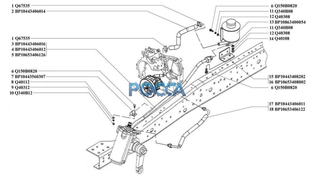 | 18 | BP10653406122 | Шланг нагнетательный от насоса к управлению рулевому |