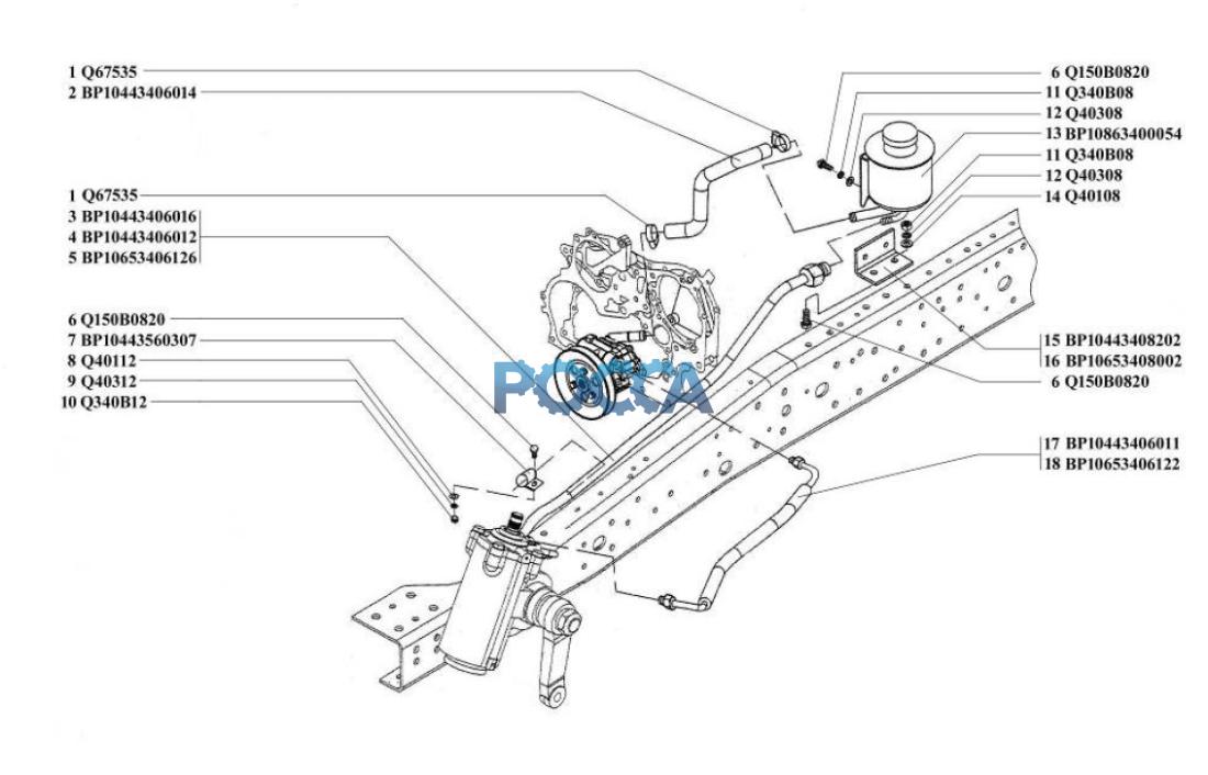 | 18 | BP10653406122 | 1 | Шланг нагнетательный от насоса к управлению рулевому |