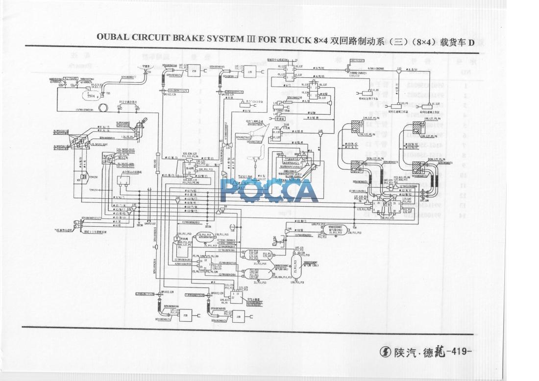 Схема тормозной системы 8х4 SHAANXI (Шанкси) SHACMAN F2000 35 Гр. Тормоза