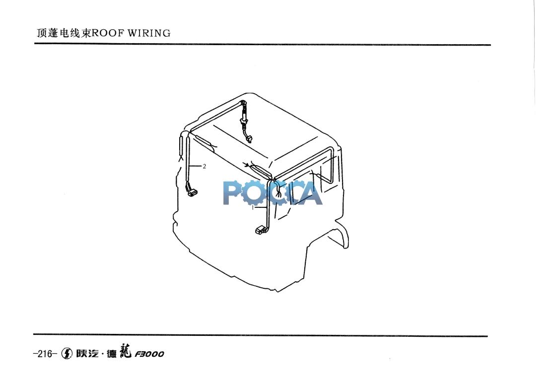 | 2 | DZ95189772106 | 1 | 驾驶室右顶篷电线束 | Ri^it roof wiring |