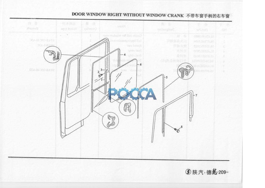 | 6 | DZ1643330012 | 1 | Door glass assembly | 车门玻璃总成(右) | ||||
