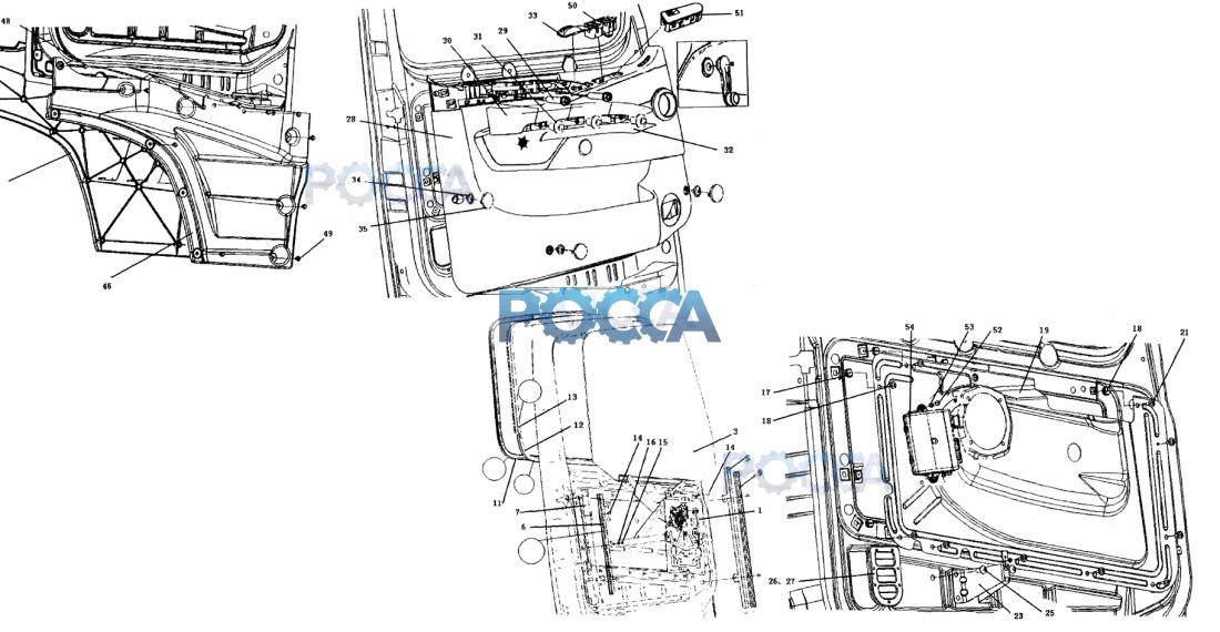 | 36 | WG1664330026 | 1 | 右车n内衬板总成 | Internal lining for right door | ||||