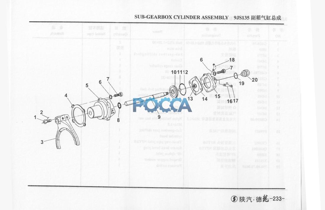 | 15 | F99857 | 1 | 副箱换档气缸盖 | Sub-gearbox gear shifting cylinder head | ||||